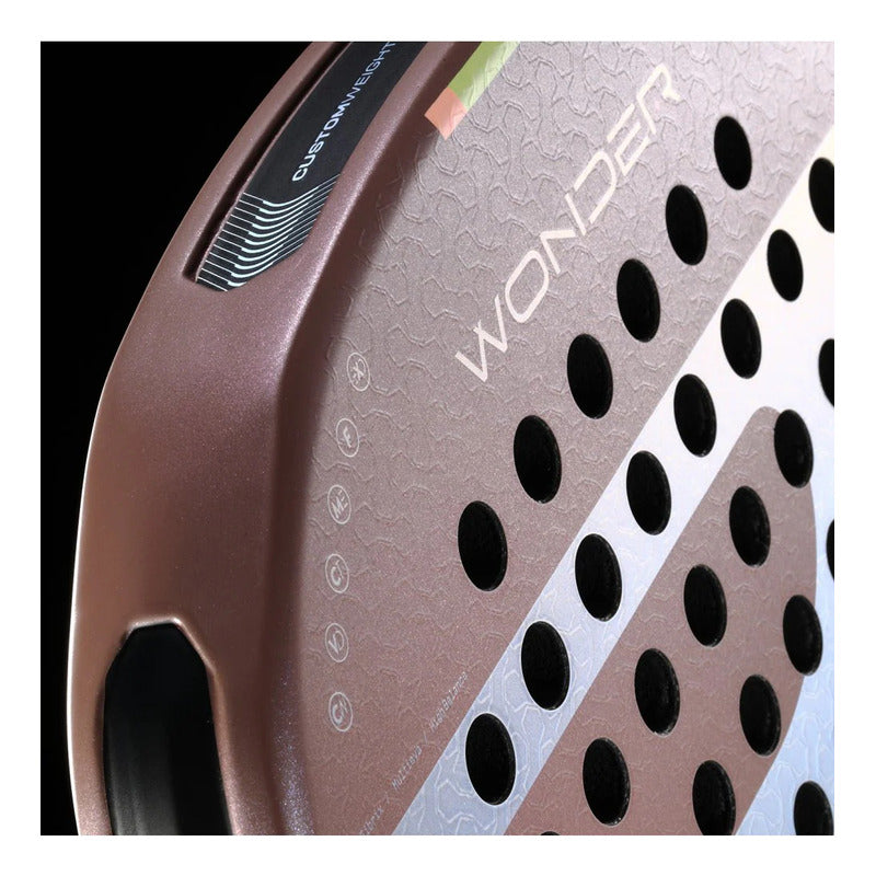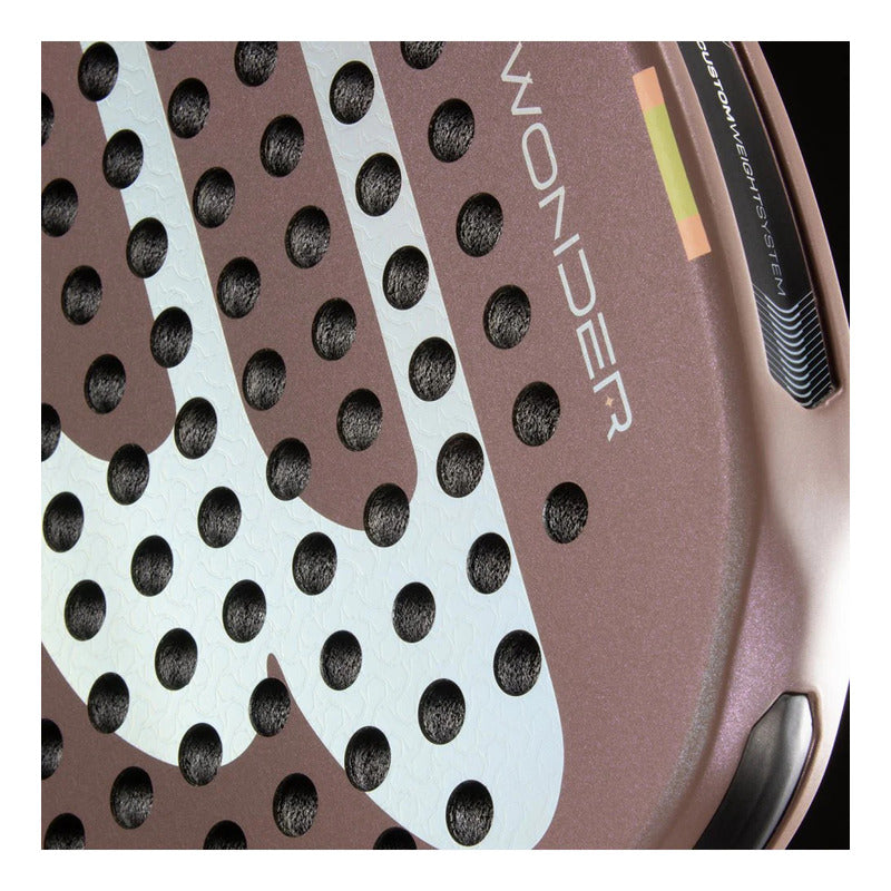 Te presentamos la nueva Wonder, la pala de Claudia Fernández, la jugadora que con solo 19 años ya deslumbra en lo más alto del pádel mundial. Apodada “La Niña Maravilla”, Claudia ha inspirado un modelo completamente nuevo, ligero y ágil, pero con una firmeza sorprendente. Gracias a su innovadora estructura ExoFrame, Wonder ofrece una una sensación de juego única en todos tus golpeos. El futuro ya está aquí y tiene nombres propios: Wonder & Claudia. Tecnologías: ExoFrame, Air React Channel, Custom Weight, Vibradrive, Multieva, Fibrix. • Especificaciones Técnicas: • Peso: 350-360 gramos • Perfil: 38 mm • Balance: 25.7cm • Superficie de juego: 517 cm2 • Forma: Hibrida • Composición Exterior: Fibrix • Composición Interior: Multieva • Acabado rugoso: Tipo 3D • Nivel: Avanzado • Ideal para: Juego Polivalente.