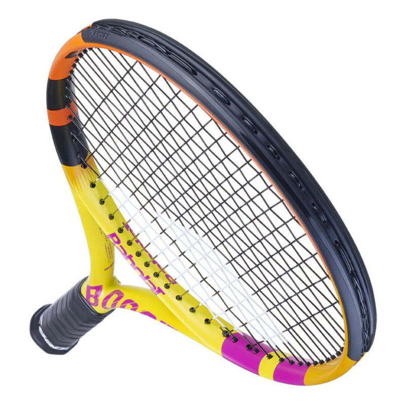 Ya sea que estés iniciándote o regresando al tenis, o buscando un marco de alto rendimiento que sea fácil de utilizar, la Boost está hecha para ti. Inspirada directamente de la raqueta de Rafael Nadal, la boost Rafa te permitirá realizar remates, dejadas y saques ganadores con la elegancia de un campeón. ¡Vamos! Beneficios LIGEREZA Las pesadas raquetas de madera pertenecen al siglo pasado. ¡Bienvenido al 2020! La raqueta Boost Aero representa dignamente la nueva generación, gracias a su estructura íntegramente en grafito. Esta tecnología, utilizada en las mejores raquetas de tenis, confiere una gran ligereza, sin afectar la solidez ni la durabilidad. POTENCIA ¡Sería una pena dejar el tenis porque no tienes el brazo de Rafa! Lo que necesitas es una raqueta fácil de usar, que te ayudará a generar más potencia para mejorar tu juego. La raqueta Boost Aero está especialmente diseñada para este fin. Una raqueta de fibra de carbono que ofrece esa potencia extra que necesitas MANEJABILIDAD ¿Empezaste a jugar al tenis luego de haber visto un increíble revés en la televisión? Aunque no podemos prometer que podrás hacer lo mismo, te garantizamos que esta raqueta es extremadamente manejable. Ha sido diseñada para ser ligera pero equilibrada, evitando el cansancio de tu brazo y aumentando tus posibilidades de ganar. Características técnicas Tamaño de la cabeza: 660 cm² Largo: 685 mm Peso (sin cordaje): 260 g +/- 7g Equilibrio (sin cordaje): 340 mm +/- 7mm Patrón de encordado: 16/19 Rigidez (RA): 70 Ancho del marco:23-26-23 Composición: Grafito Cordaje recomendado: Syn Gut / Xcel Tensión recomendada: 23-25 Kg Grip recomendado: SYNTEC UPTAKE Con / sin cordaje: Encordada Tipo de funda: Funda completa